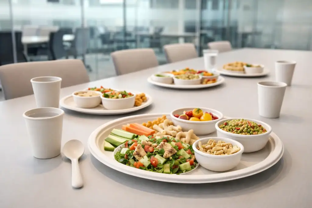 Biodegradable tableware ideal for restaurants and catering services offering eco-friendly dining.