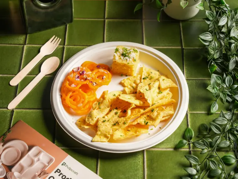 The moisture-resistant surface helps prevent absorption of oils and liquids, keeping plates firm and presentable even when handling juicy or heavily seasoned dishes. Unlike conventional paper plates, bagasse retains its shape from first serving to the final bite.