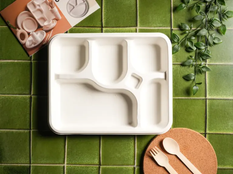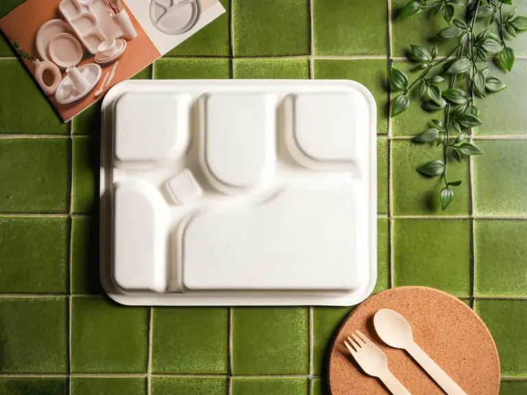 This eco-friendly 5 Compartment Meal Tray made from bagasse is designed to make meal serving more efficient while encouraging responsible and green dining. Crafted from bagasse, a renewable sugarcane waste fiber, these trays offer a practical and environmentally responsible alternative to traditional disposable meal trays made from plastic or paper. As a biodegradable tableware manufacturer, we focus on solutions that balance functionality with sustainability.
